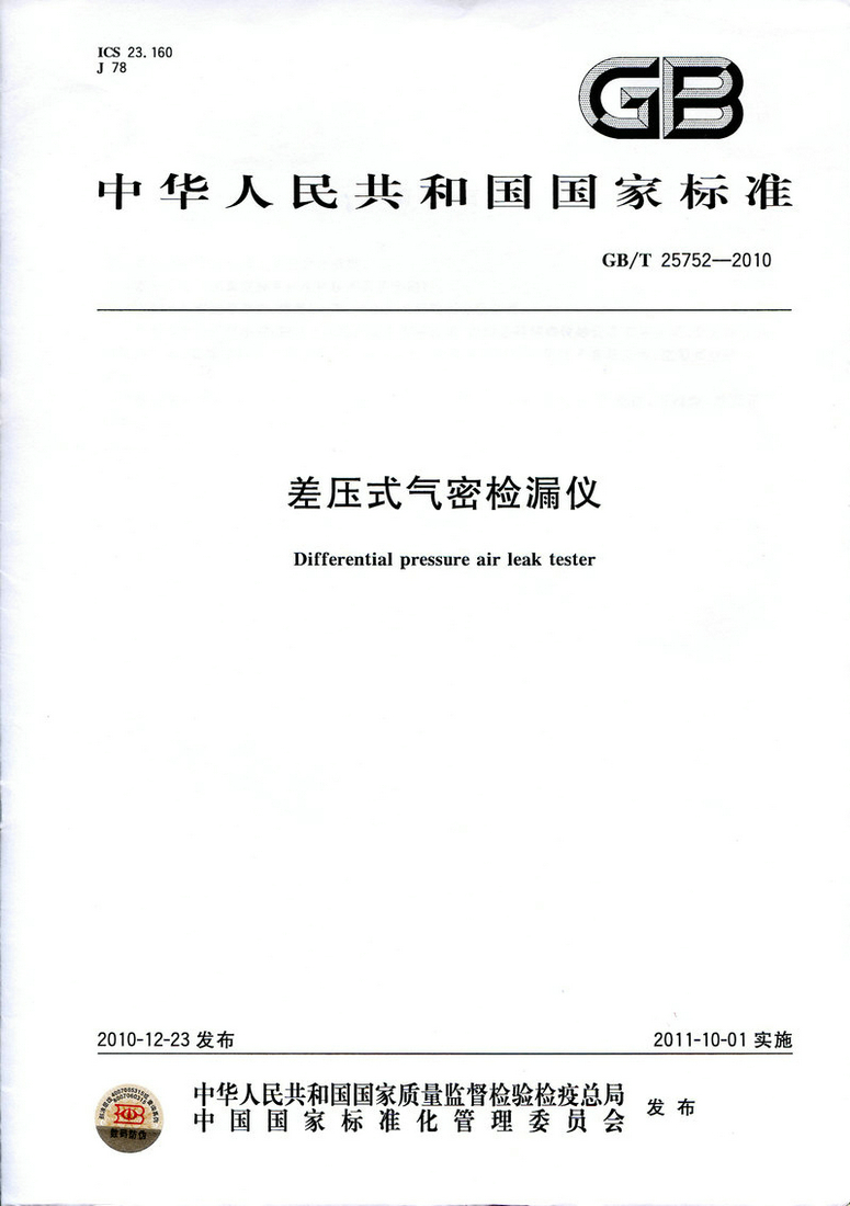 《差壓式氣密檢漏儀》GB/T 25752—2010