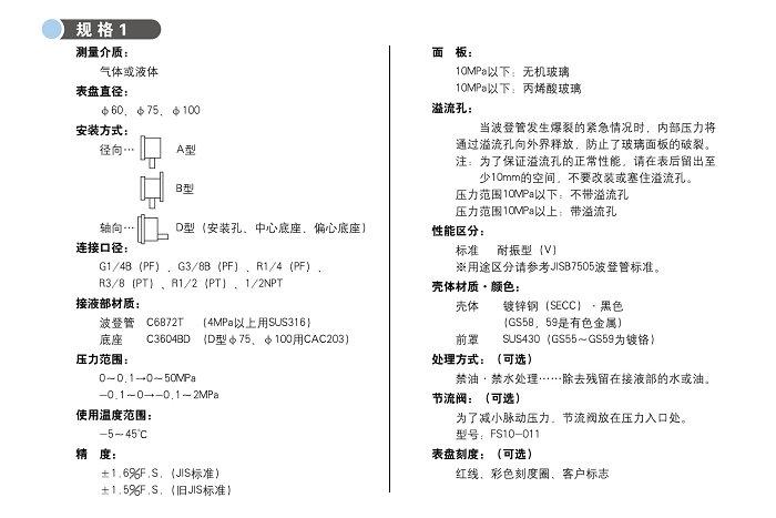 本產(chǎn)品符合日本工業(yè)(JIS)標準,是一款性價比高,用途廣泛的壓力表。