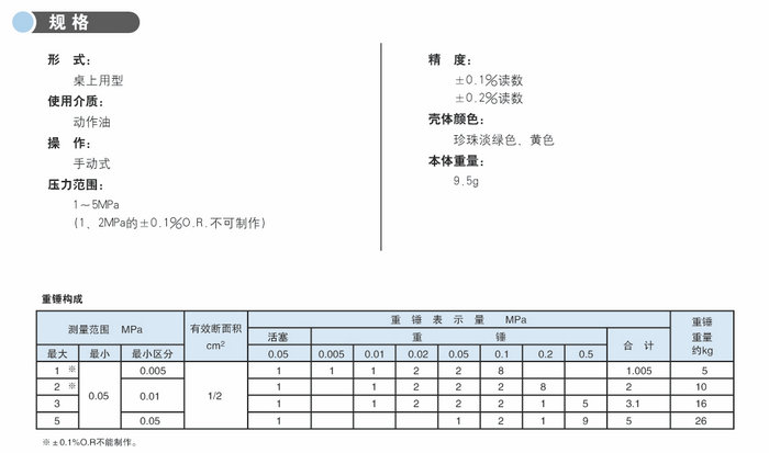 可用于高壓領(lǐng)域(10-50MPa)的壓力范圍檢查和校正