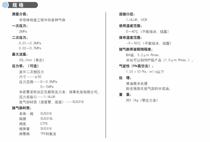 為各種半導體供給系統(tǒng)及制造設(shè)備專門開發(fā)制造的小型調(diào)壓閥。