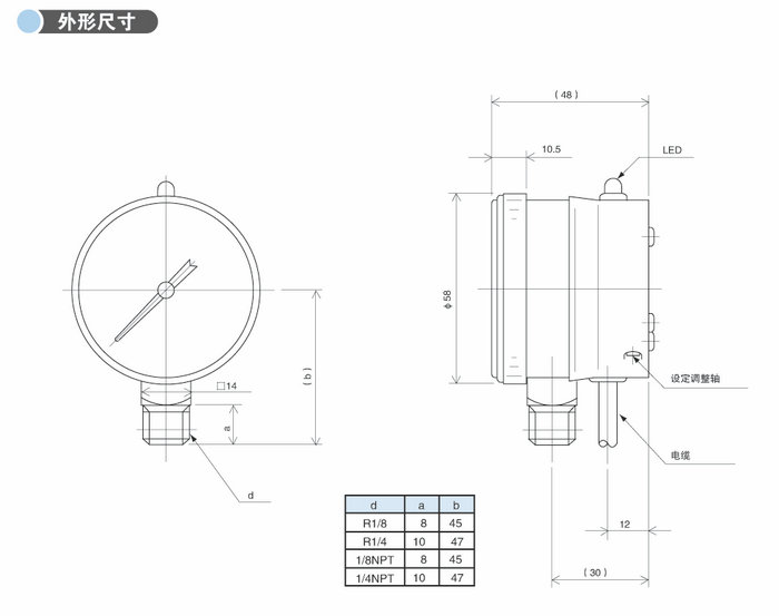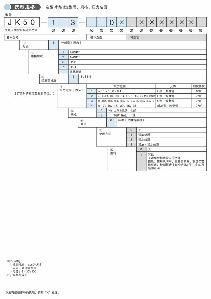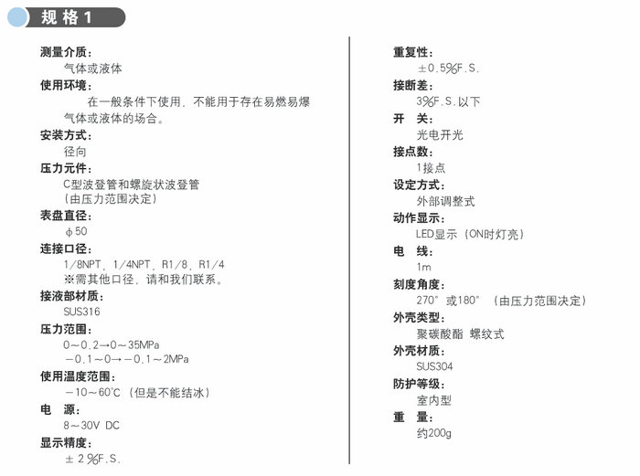本產(chǎn)品是小型帶接點壓力表,內(nèi)置了可靠性的光電開關(guān),主要用于控制報警輸出和繼電器的開關(guān)等